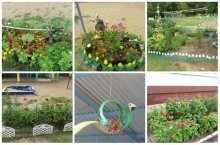 Наши педагоги и родители на территории детского сада создали замечательные цветочные клумбы с различными оригинальными композициями.