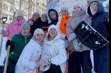 Коллектив в зимней экипировке показывает, что даже к уборке снега можно подойти с юмором. Лопаты стучат, смех звенит.