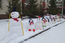 А еще зимой можно лепить из мокрого снега снежную бабу или снеговика. Улицы засыпало снегом, и малыши в детском саду с удовольствием выходят на зимнюю прогулку. Ведь так хочется потрогать руками снег, поймать в ладошки снежинку, и конечно поиграть в игры со снегом. Мы - всем детским садом, решили слепить веселых лыжников - снеговиков, чтобы украсить наши участки для прогулок. Дети получили кучу положительных эмоций от совместной деятельности, и остались довольны полученным результатом.