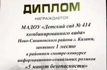 Коллектив детского сада занял I место в районном смотре – конкурсе информационно – социальных роликов «5 минут безопасности».