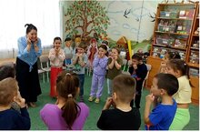 А в старшей группе №9 ребята, вместе с педагогом Алиёй Мухлисовной, отправились в увлекательное путешествие, в ходе которого проиграли много игр на закрепление пройденного материала по татарскому языку.