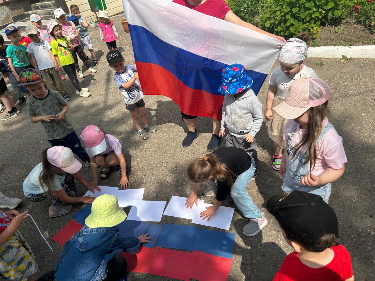 День России – это отличный повод рассказать детям ещё раз об истории нашей огромной и самой красивой в мире многонациональной страны, о многообразии народных традиций, совершить интересные и увлекательные путешествия по просторам нашей необъятной Родины. Мы гордимся своим великим прошлым и стремимся к тому, чтобы жить в прекрасной и процветающей странеВ группах воспитатели провели беседы «Наша Родина — Россия» с использованием презентаций, викторины «Мы живем в России» и творческие занятия.