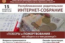 15 декабря в Казани пройдет второе республиканское родительское интернет-собрание, посвящённое вопросам противодействия проявлениям коррупции в системе образования. Начало в 12.00. Его проведет замминистра образования и науки РТ Гульнара Габдрахманова.