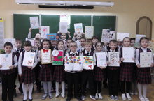 Учащиеся 1 А класса приняли участие в празднике, посвящённого дню рождения магазина "Бюрократ". Ребята сделали поздравительные открытки и представители этого магазина наградили их памятными подарками