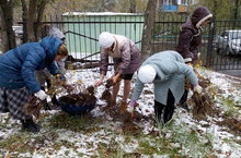 Сегодня на благоустройство пришкольной территории вышли учителя школы. Убирали бытовой мусор, цветочные клумбы подготовили к зиме.