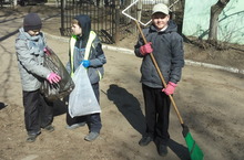 Учащиеся 4Б класса в очередной раз приняли участие в субботнике. Мы хотим чтобы было чисто.