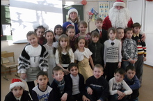 Ребята нашего класса весело отпраздновали встречу Нового года. В гости к нам пришли Дед Мороз и Снегурочка. Все вместе танцевали, водили хоровод, играли. Много разных подарков раздал Дед Мороз ребятишкам.