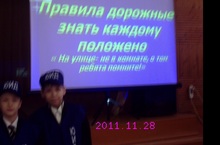 28 ноября 2011г. в школе прошла линейка,посвящённая "Дню памяти жертв ДТП". На линейке присутствовали ученики начальных классов.Выступила агитбригада "Зебра" 4 А и 4Б кл.