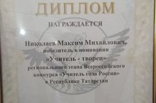 Николаев Максим Михайлович победитель в номинации « Учитель творец» регионального этапа Всероссийского конкурса «Учитель года России»