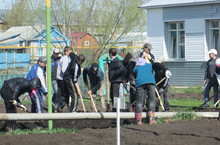 "Язның бер көне-ел туйдыра"-ди халык мәкале. Шушы мәкальгә тугры калып, мәктәп яны тәҗрибә участогында язгы эшләр башланды. Җирне көзге чүп-чардан чистартып, ашлап, китмәнләү бара.