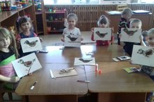 Сегодня на занятии воспитанники нетрадиционным спсобом, рисовали воробушка на ветке - изображение заваркой.