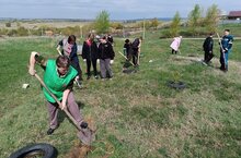 Ученики 8 класса вместе со своим классным руководителем Старовой Л. И. приняли участие в посадке деревьев.