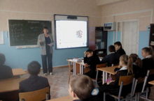 Первый урок в Архангельской СОШ был посвящен Универсиаде, которая пройдет в 2013 году в г. Казани. Учащимся были предложены для просмотра слайды с изображением г. Казани, олимпийской деревни, стадиона и талисмана – Юни, котенка крылатого снежного барса. Рассказали о волонтёрах. Также дети приняли участие в викторине. -