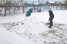 Началась подготовка к строительству зимнего городка. Учащиеся старших классов занимаются сгребанием снега для постройки фигур. Девочки реставрируют фигуры сделанные из ДВП.