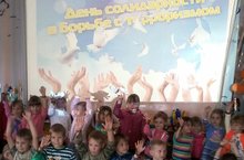 Сегодня прошло занятие, посвященное Дню солидарности в борьбе с терроризмом. Дети чтут память погибших детей в Беслане и возлагают им цветы.