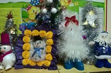 Новый год- самый лучший, волшебный, сказочный и любимый праздник для всех детей. В нашем детском саду был объявлен конкурс: Поделки детей с родителями к Новому году. Белоснежная зима для многих из нас – любимое время года, а Новый Год — один из лучших праздников. Вы только представьте себе: на улице мороз, дороги замело, все покрыто огромными сугробами, а в теплом уютном доме в выходной день собралась вся семья. И когда детишки начинают возиться с цветной бумагой и ножницами, то родители не смогут остаться в стороне и обязательно присоединятся к рукоделию, чем доставляют удовольствие и себе, и малышам. Еще больше желание творить просыпается с появлением пушистой елочки. Вот тогда уж дети с мамой и папой открывают настоящую мастерскую Деда Мороза, столько игрушек на елку, гирлянд, снежинок и украшений появляется из-под их рук. Это не только красиво, но и дарит огромную радость тем, кто их увидит. Каждый год мы предлагаем родителям вместе с детьми изготовить интересную поделку на усмотрение родителей и детей, и проявить свою фантазию. Вот какая красота получилась. Спасибо вам огромное, уважаемые родители за ваш труд и красоту.