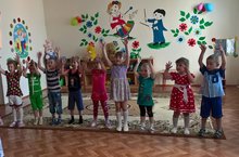 Мы на цыпочки привстали,Ручки кверху мы подняли,Мы вздохнули, потянулисьИ друг другу улыбнулись. -