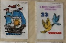 В гимназии около библиотеки организована выставка рисунков и поделок, приуроченная к 75-летию Великой Победы и 23 февралю.