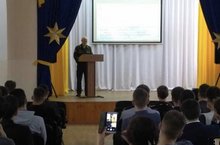 В актовом зале гимназиии состоялась встреча юношей 10-11 11 классов с Пичушкиным Андреем Владимировичем, военным комиссаром г.Чистополь, Чистополького и Новошешминского района Республики Татарстан. Он выступил темой: "Поступление в военные учебные заведения. Профессия офицера".