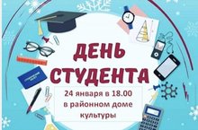 Приглашаем всех студентов района на день студентов, который состоится 24 января в 18.00 часов в районном доме культуре. После окончания мерприятия студенты смогут посмотреть художственный фильм.