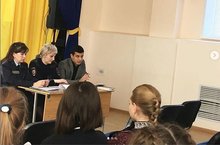 Сегодня в гимназии состоялась встречаобучающихся гимназии с помощником прокурора и представителями ОВД НМР по теме: “Терроризм” в целях формирования гражданской позиции молодежи - провели для школьников и студентов краевую просветительскую акцию на тему «Профилактика терроризма и экстремизма в молодежной среде».
