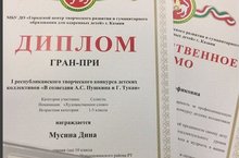 Поздравляем ученицу 10-го класса Мусину Дину, обладательницу ГранПри Первого республиканского творческого конкурса детских коллективов " В созвездии А.С.Пушкина и Г.Тукая". Молодец, Дина! Так держать!