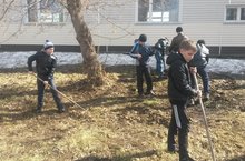 Сегодня учащиеся гимназии провели в порядок спортивную площадку и территорию вокруг школы.