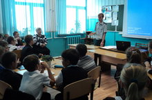 В гимназии проходит Урок чистоты -2014. Сегодня перед учащимися выступил представитель из министрества экологии.