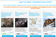 Час Земли – акция символического выключения света на один час в знак неравнодушия к будущему планеты – обрела невероятную мощь. В прошлом году к нам присоединились 2 миллиарда человек из 150 стран по всему миру. И эта поддержка каждый год превращается в реальные дела. Так в России, в 2012 году за время кампании «Час Земли» было собрано более 120 тысяч подписей за закон о защите морей от нефтяного загрязнения. В конце 2012 года закон был подписан Президентом. В 2013 году в рамках «Часа Земли» удалось собрать 130 тысяч подписей за запрет промышленных рубок в защитных лесах. Сегодня WWF призывает вновь использовать нашу общую силу на благо планеты и поддержать любой из проектов по спасению диких животных на этой странице! Вы можете как оставить свой голос, так и пожертвовать средства на сохранение тигра, белого медведя, леопарда, снежного барса и зубра. Вместе мы можем многое! -