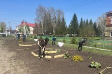 Сегодня на уборку и благоустройство территории вышли педагоги и старшие классы. Мы все вместе обработали центральную клумбу для цветов, произвели рыхление почвы вокруг деревьев, побелили бордюры. После такой напряженной и упорной работы территория школы стала светлой и просторной.