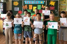 Сегодня ребята вспоминали, какие привычки приносят организму пользу, а какие - наносят вред. Закрепление теории завершили на пришкольном участке, где наводили порядок на цветниках и грядках. Ну а после вкусного обеда всех ждали развлечения в виде спортивных игр. Также вспомнили забытые игры в "клеточки" и "классики".