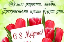 В этот светлый весенний праздник хочется от всей души поздравить с Международным женский днем и пожелать самых важных и бесценных вещей: здоровья, любви и простого человеческого счастья. Пусть дома всегда царит тепло и уют, пусть близкие и родные всегда будут рядом, пусть жизнь будет полна радости.