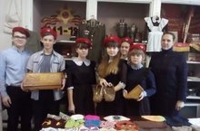 Юнармейцы приняли активное участие в пополнение школьного музея. Фонд школьного музея пополнился новыми экспонатами: это хлебница, подставка для ножей ручной работы (выполненные 25 лет назад) и лапти.