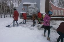 Учащиеся нашей школы всегда следят за порядком и чистотой памятника. 2 декабря учащиеся 9 го класса очистили памятник от снега.