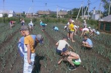 13 июня 2014г. ребята из трудового лагеря продолжают свою работу на пришкольном участке. Они поливают капусту и томаты, пропалывают лук, морковь и свеклу, следят за клумбами, ухаживают за садом.