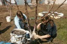 24 апреля 2014г. учащиеся и коллектив школы побелили столбы, бардюры, деревья.