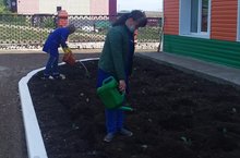 Сотрудники на клумбы детского сада высадили 180 корней цветов (бархатцы, петунью, львный зев, годеции, васелек и др) 12.05.2020