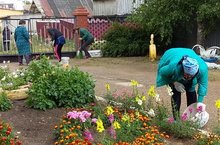 Сотрудники детского сада на уборки территории 30.07.2019