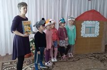 Год театра. Театральное представление сказки "Теремок" подготовительной группы совместно с заведующий сельской библиотекой для наших малышек. 29.01.2019
