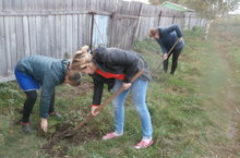 Работники детского сада приняли участие в акции "День посадки леса" За территорией были посажены сосны.