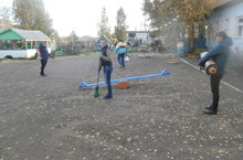 Благоустройство территории. Работники детского сада вышли на уборку территории от цветов, мусора и уборку поделок 14.10.2016