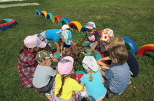 Коллектив детского сада проводил работы по уборке прилежащего участка, цветников, игровых участков.
