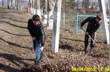Ребята 10-11 классов привели в порядок территорию вокруг школы 12.04.2013