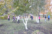 Учащиеся и педагоги школы сегодня вышли на очередной субботник. Они обрезали ветки дплодовых деревьев, собрали опавшую листву и подмели территорию школы.