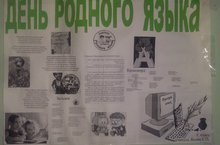 21 февраля-Международный день родного языка. По этому в школе организованна выставка плакатов, прошли викторины, были вывешены ребусы.