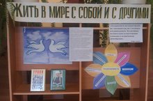 В библиотеке прошла выставка книг по тематике "Толерантность". Выставка проходила под названием "Жить в мире с собой и с другими".