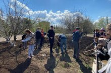 27 апреля ученики 5-11 классов продолжили облагораживание пришкольной территории. Они разрыхлили землю в "Вишнёвом саду" и "Берёзовой роще".