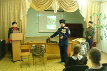 20 ноября прошел очень насыщенный день в нашей школе. К нам в гости пришли: заместитель окружного атамана, Симбирский округ Волжское войско, наказной атаман по РТ, восйковой старшина Н.С. Пузырев и казаки станицы Черемшанское. Казаки рассказали детям о там кто они такие, чем занимаются.