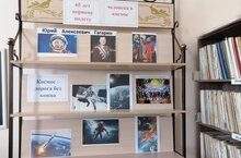 В школьной библиотеке действует иллюстрированная выставка, посвященная 65 летию полета человека в космос. Нв выставке читатели могу познакомиться с первым космонавтом Юрием Алексеевичем Гагариным, а также рубрикой "Космос - дорога без конца".