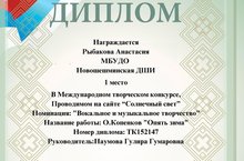 Участие в Международном интернет конкусе "Солнечный свет" Рыбакова Анастасия 02.02.2017
